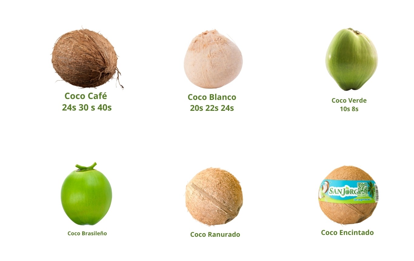 Ofrecemos dos tipos de coco, blanco y café. Los cocos blancos tienen una medida aproximada de 14 pulgadas, mientras que los de color café tienen una medida de 19 pulgadas. Ambos tipos de coco son ideales para la preparación de deliciosas recetas tropicales, como postres, bebidas y platillos salados. El coco blanco es perfecto para rallar y usar en repostería, mientras que el coco café es ideal para extraer su deliciosa agua y utilizar su carne en la preparación de platillos exóticos. Sea cual sea tu elección, los cocos que ofrecemos son frescos, de alta calidad y traídos directamente de las mejores plantaciones.