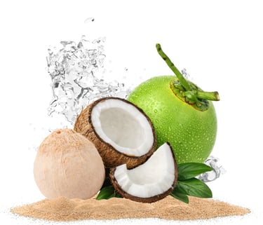 El coco es un fruto tropical muy versátil que se obtiene del cocotero. Su forma casi redonda alberga agua, pulpa fibrosa y aceitosa en su interior, lo que lo convierte en un producto del que se puede aprovechar el 100% de su composición.