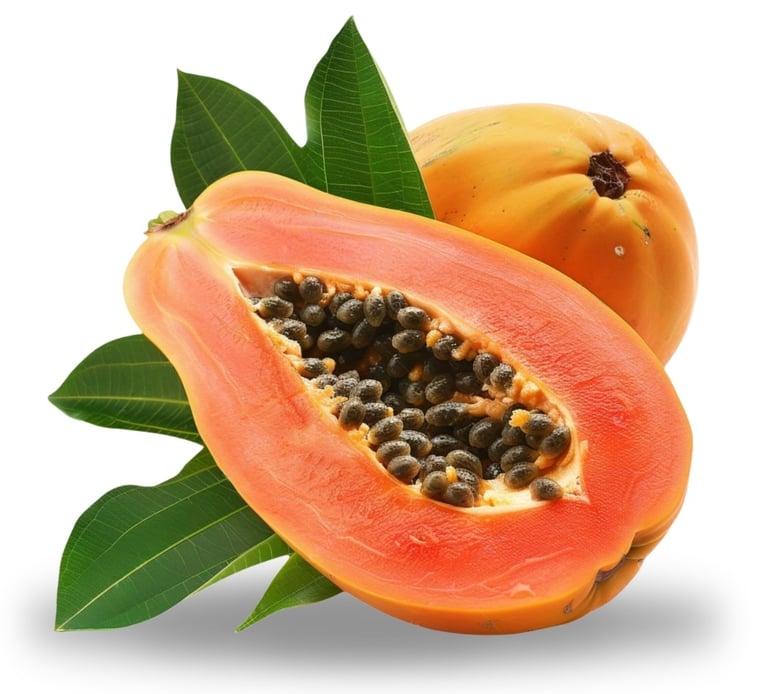 La papaya es una fruta tropical de rápido crecimiento, originaria de América, conocida por su sabor dulce, pulpa jugosa de color naranja y numerosas semillas negras.